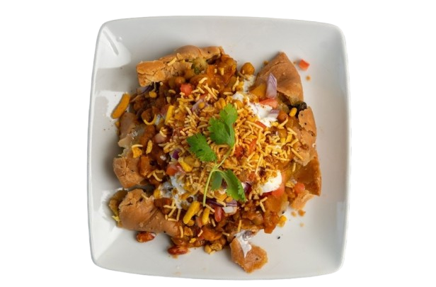 Traditional Indian street food topped with our signature sauces, yogurt, fresh coriander, and a perfect blend of spices.